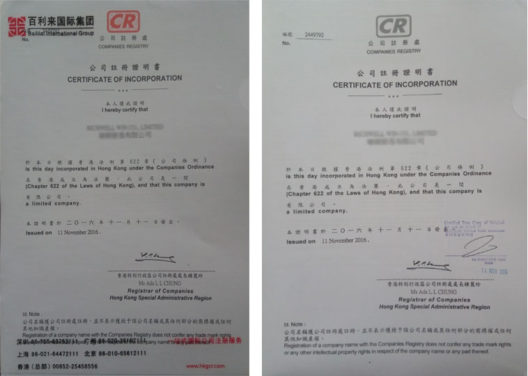 假如查詢到公司中英文都沒錯(cuò),時(shí)間也沒錯(cuò),那證明代理公司確實(shí)注冊了香港公司,領(lǐng)到了注冊證書了。