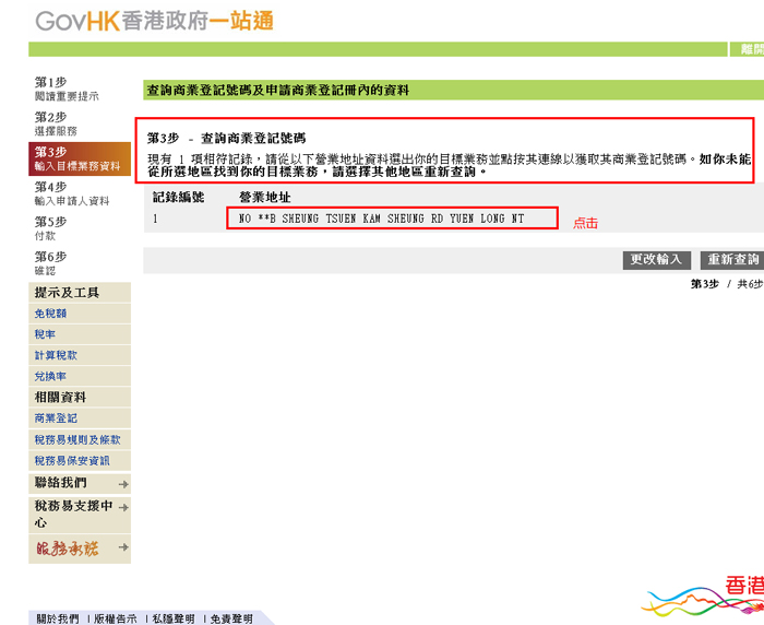 (查詢商業(yè)登記號碼)輸入業(yè)務名稱及其所處地區(qū)