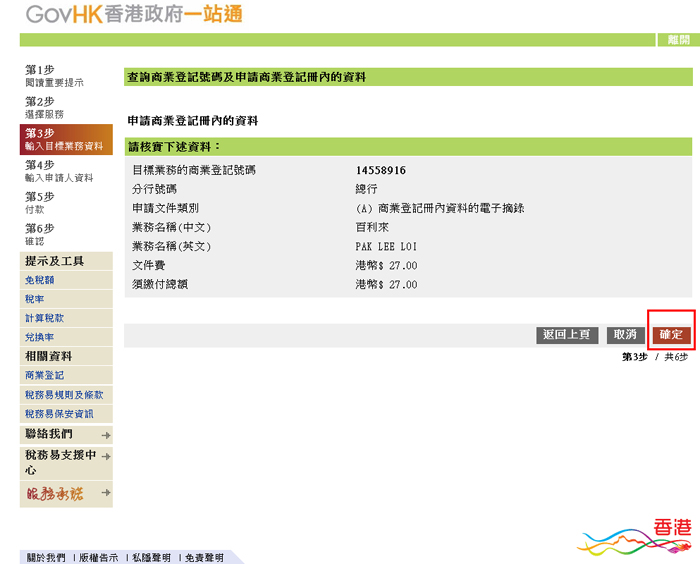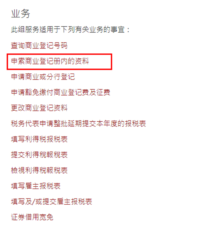 (申請商業(yè)登記冊內的資料)輸入商業(yè)登記號碼