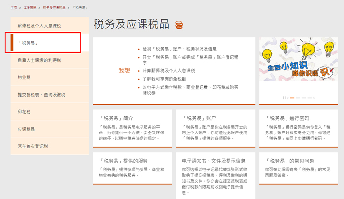 三、進入香港稅局官方網站,找到“電子服務”,進入“稅務易”頁面;