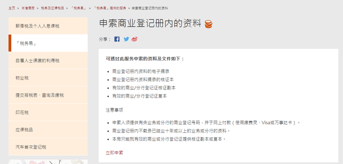 四、點擊在“稅務易提供的服務”進入“申索商業(yè)登記冊內的資料”;