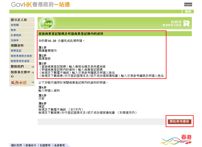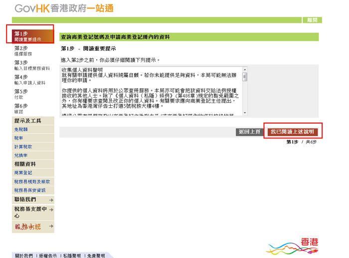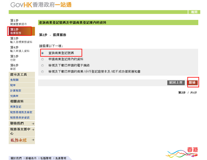 六、進入立即申索的頁面后,會出現(xiàn)“查詢商業(yè)登記號碼及申請商業(yè)登記冊內的資料”,按照步驟進行查詢: