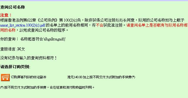 注意:香港公司名稱查冊可以以名稱起首查冊,也可以全名查冊,查冊時要注意公司名稱是英文還是中文的,如果是中文名稱,需用繁體字。